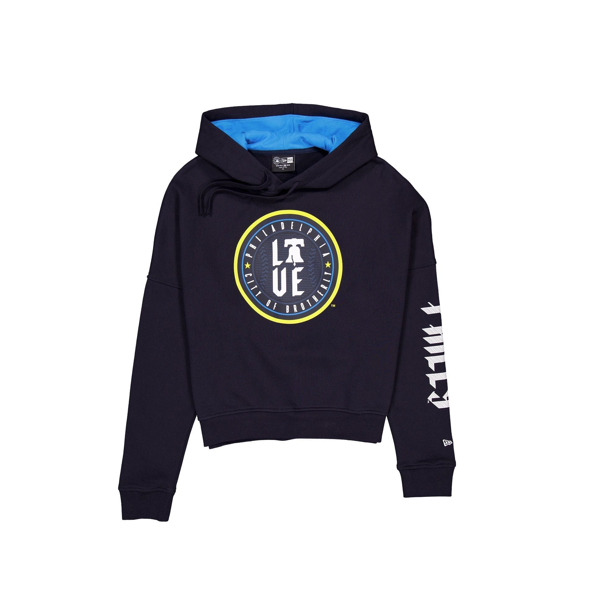 Jersey inspired, city connected. The Philadelphia Phillies City Connect Women's Hoodie features a screen-printed Phillies logo at the front with a team wordmark at the left-wear sleeve.