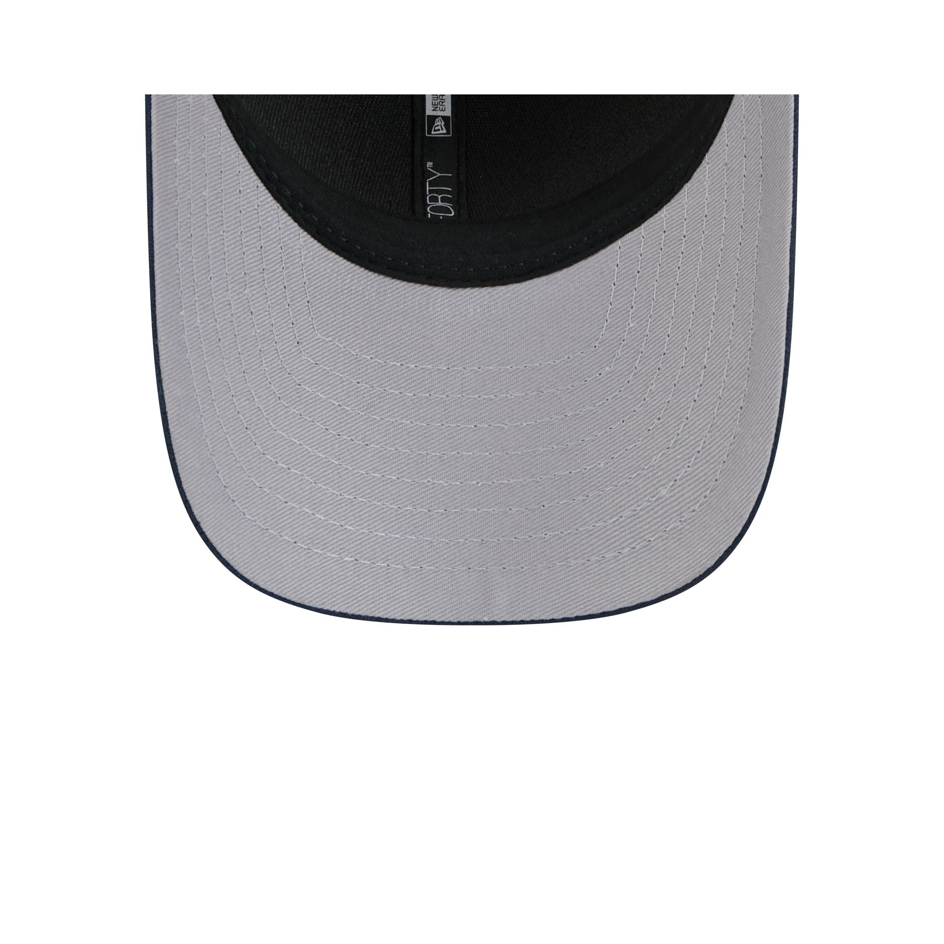 The Philadelphia Phillies Linen 9FORTY M-Crown Snapback features an embroidered Phillies logo at the front panels with a snapback closure at a pinstripe rear and a gray undervisor.
