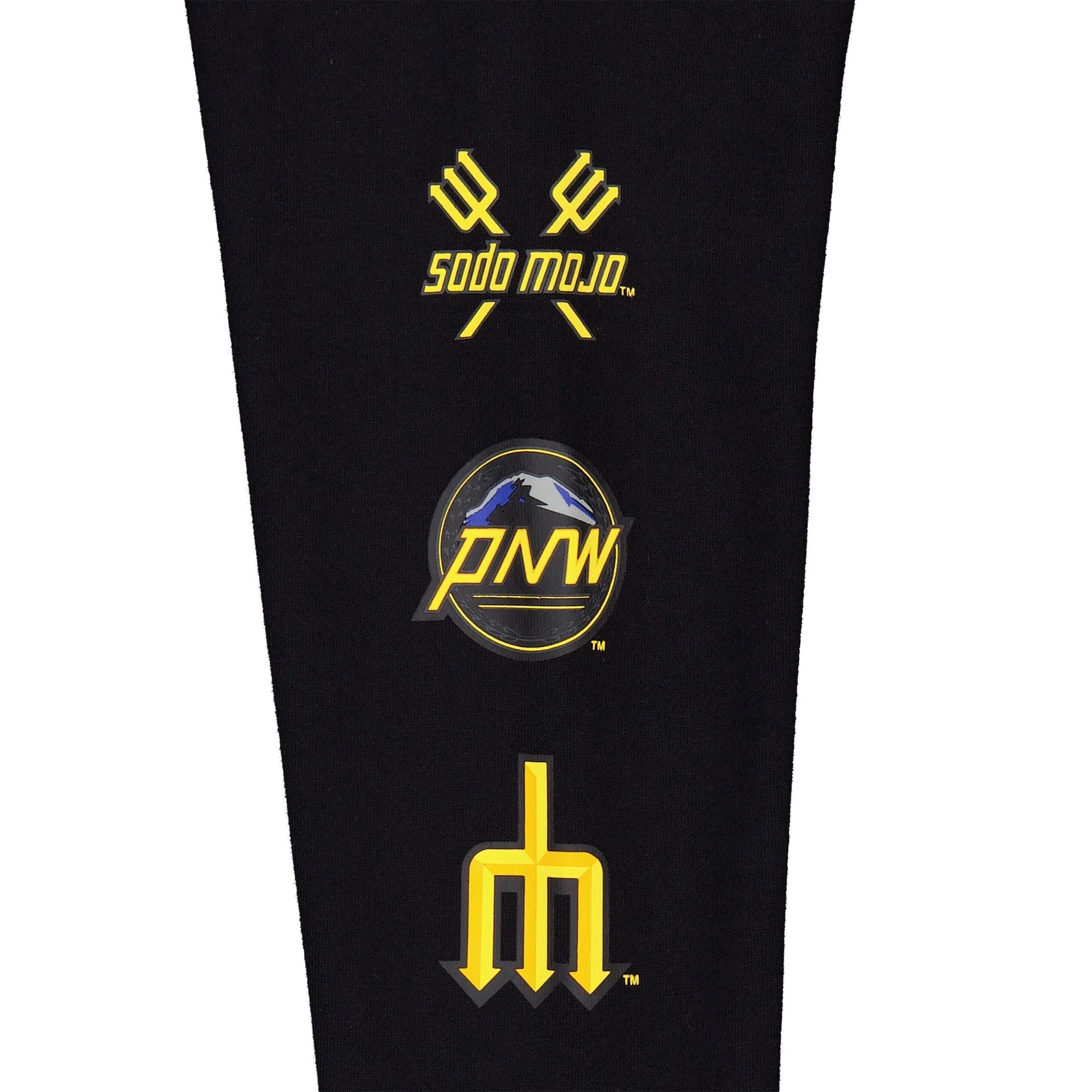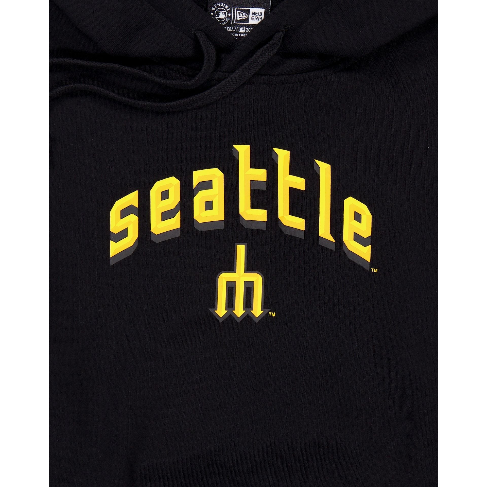 Jersey inspired, city connected. The Seattle Mariners City Connect Women's Hoodie features a screen-printed Mariners wordmark and logo at the front with alternate team logos at the left sleeve.