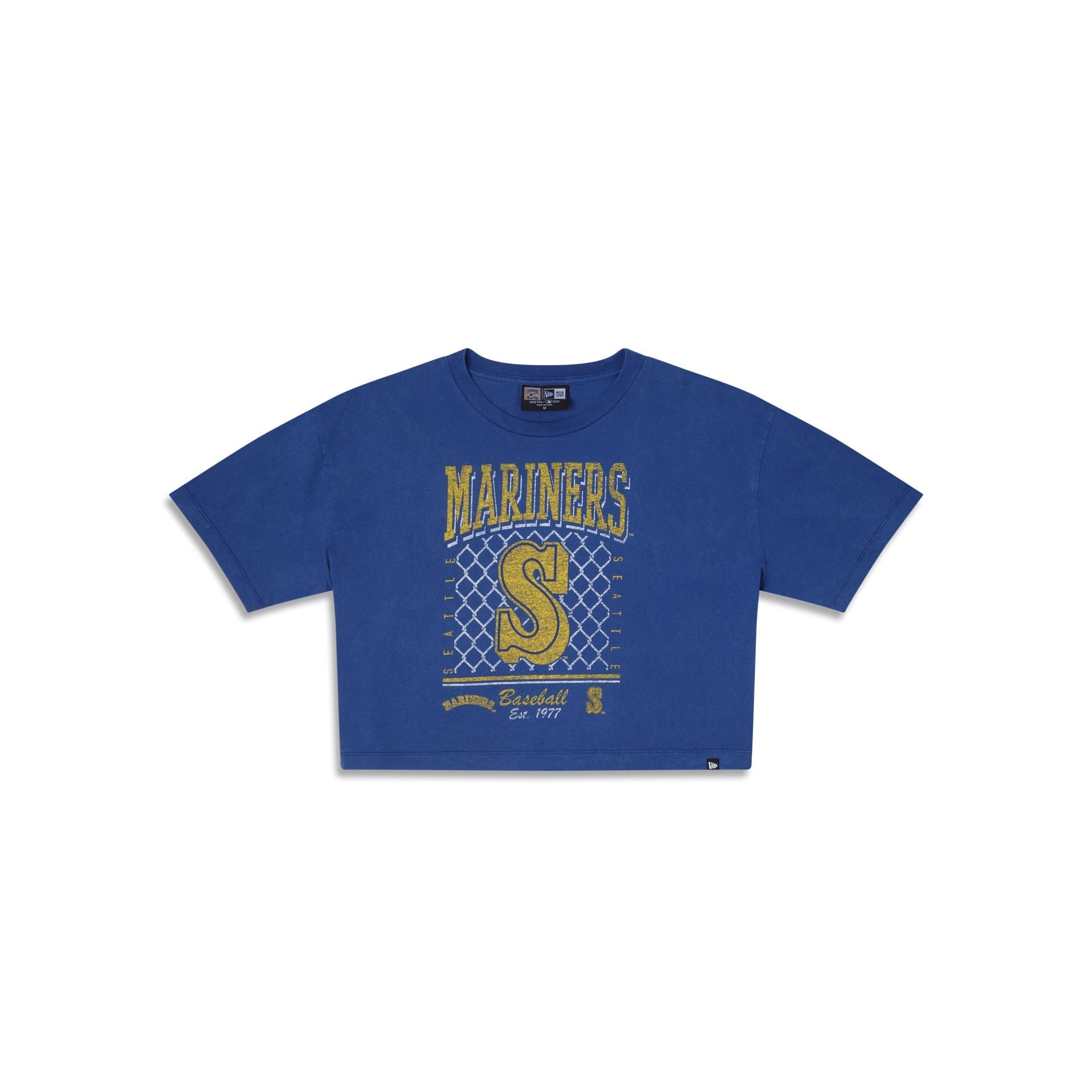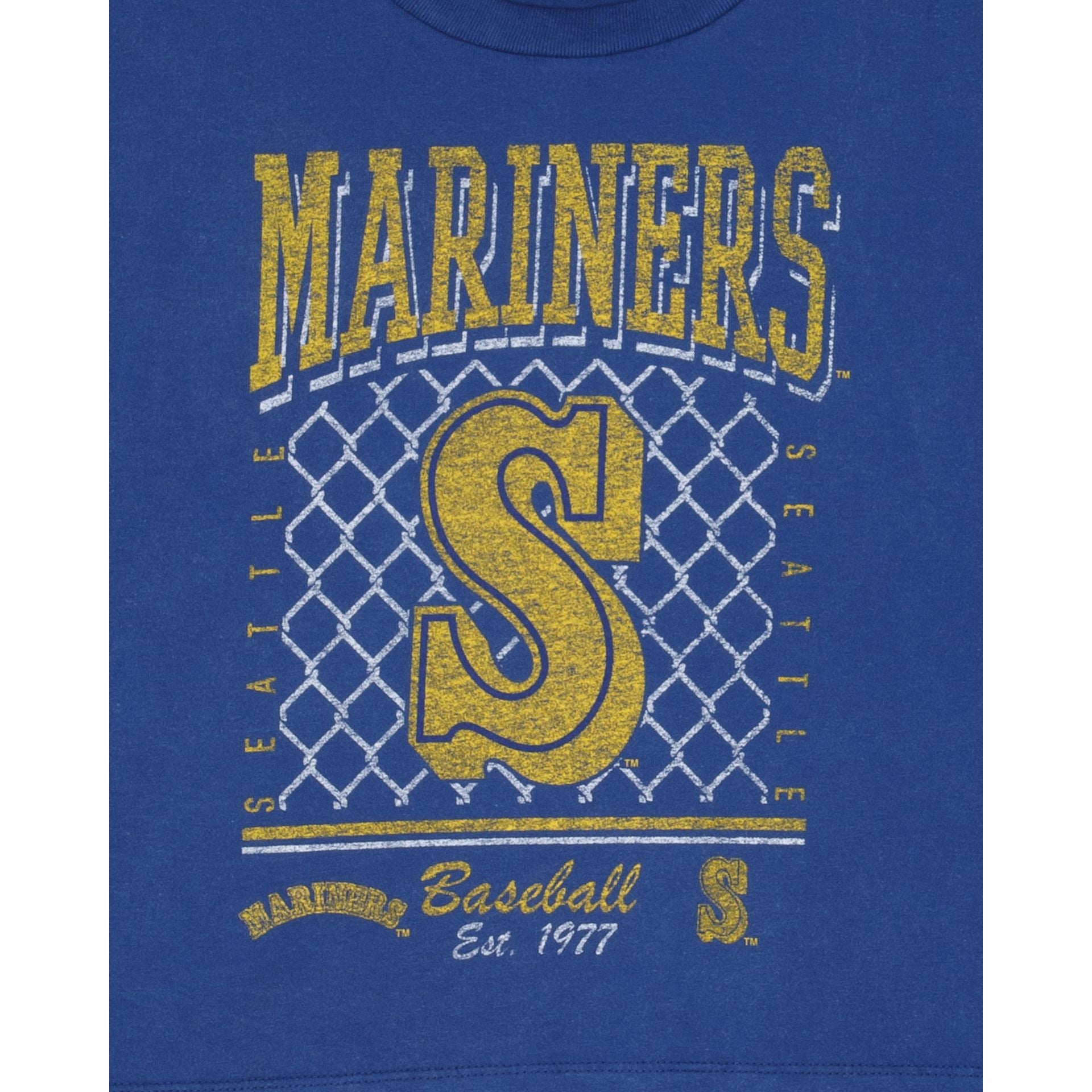The Seattle Mariners Old School Sport Women's T-Shirt features a distressed screen-printed Mariners graphic at the front.