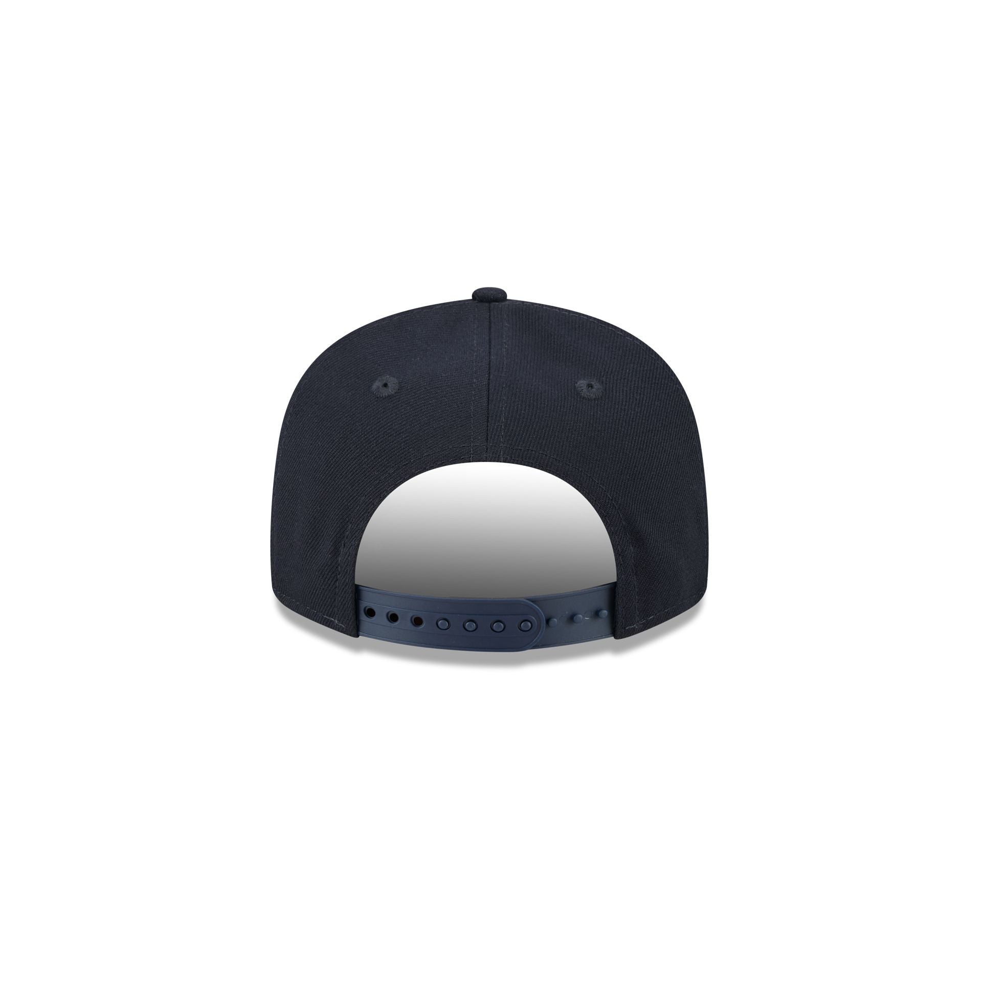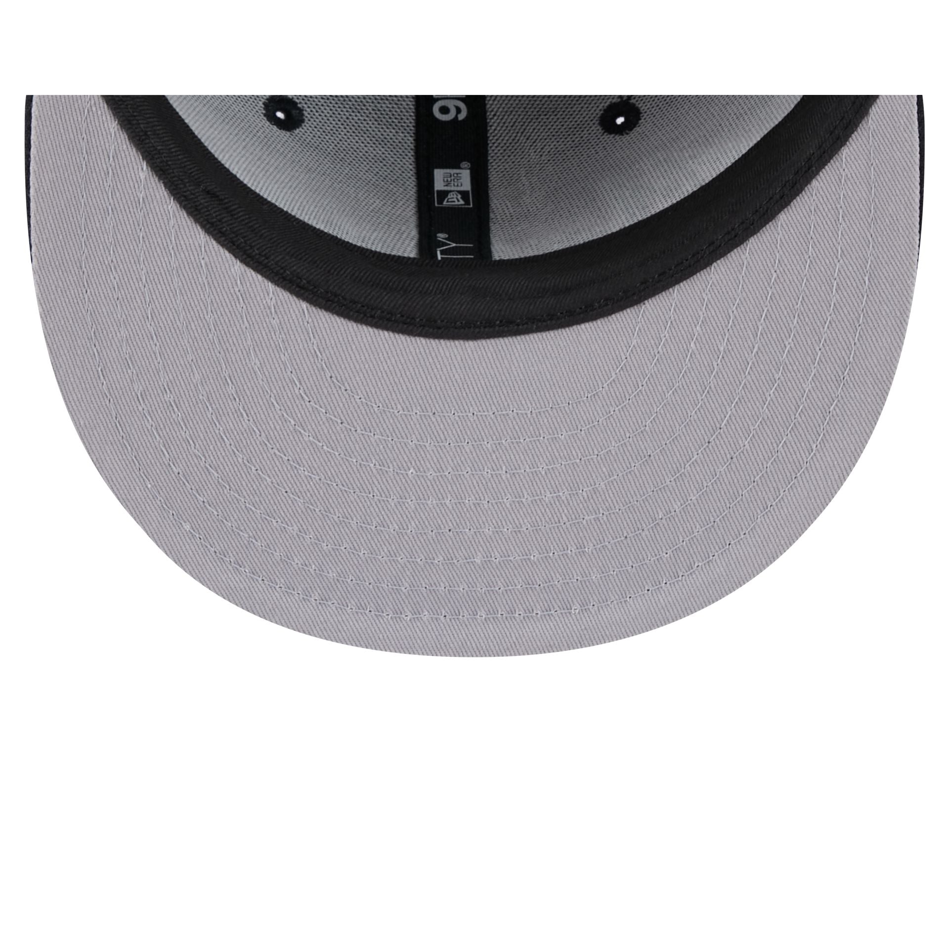The Seattle Mariners Kids 9FIFTY Snapback Hat features an embroidered Mariners wordmark at the front panels with a matching team logo at the right-wear side. Additional details include a gray undervisor and a snapback closure at the rear.